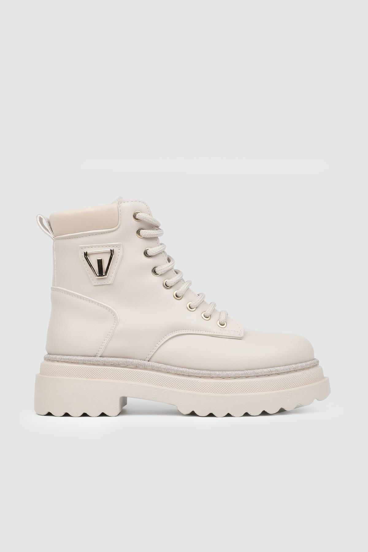 Simli Bağcıklı Kadın Bot Bej KONSEPT K-35