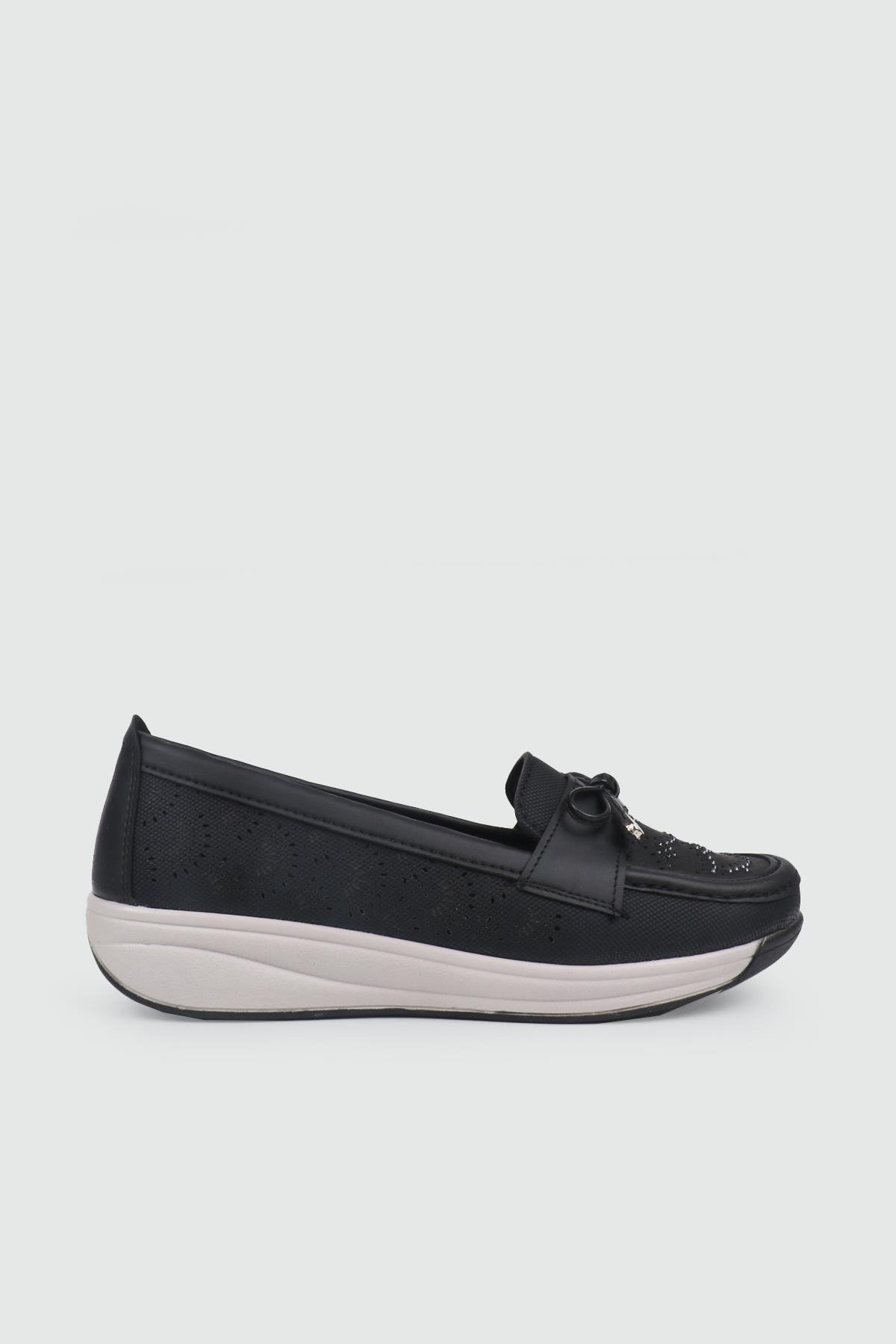Wanetti 25-281 Saraçlı Kadın Ayakkabı Siyah Kot Zımbalı